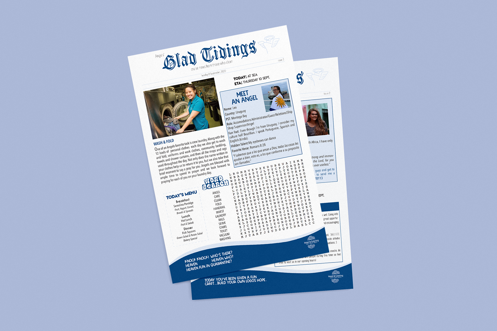 A daily newsletter with important information, daily menu, game and articles.