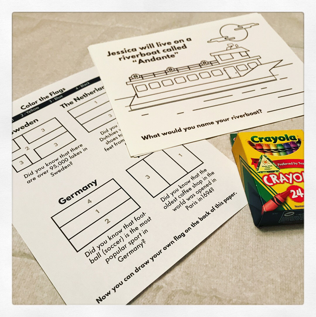 A coloring book to share about the Riverboat which had an international crew and cruised on the Rhine River.